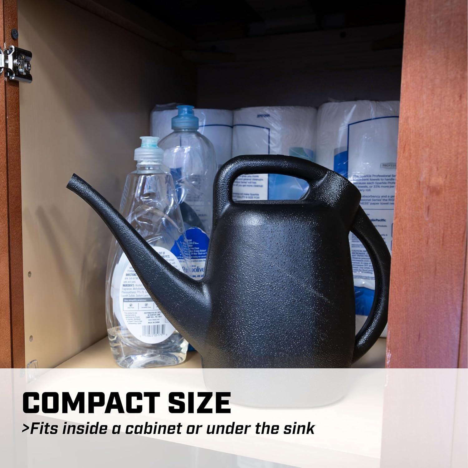 Compact size: fits under your cupboard or in a closet and you can easily fill it in your kitchen sink, no need to drag out a hose for a large watering can